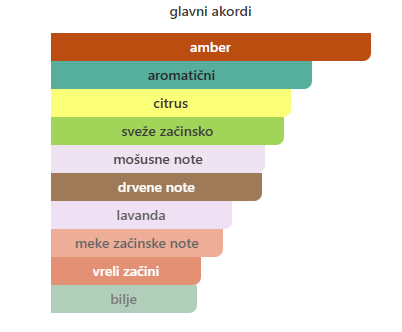 Srednje note: Lavanda, Elemi, Geranijum, Vetiver, Šafran, Kadifa