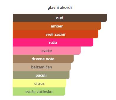 Gornje note: Turska ruža, Bugarska ruža, Šafran, Bergamot