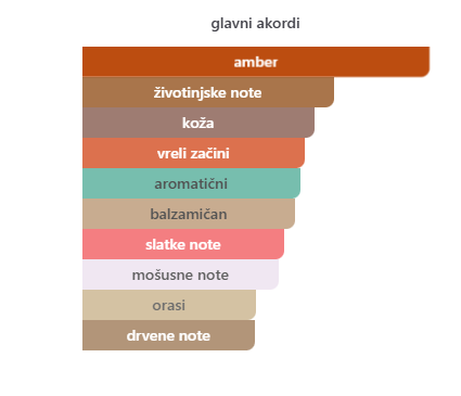 • Srednje note: Koža, Karanfilić (začin), Jasmin, Ylang-Ylang