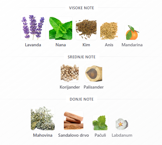 Ovo je miris koji pripada zlatnoj eri “fougere” kompozicija, gde svežina lavande prelazi u bogate, tamne drvene tonove.