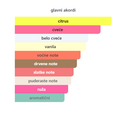 • Cvetni Akord: Majska ruža i božur daju mu klasičnu Chanel eleganciju, dok mandarina u otvaranju pruža neophodan sjaj da miris ne postane pretežak.