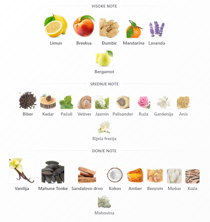 • Citrusi: Limun, Mandarina, Bergamot