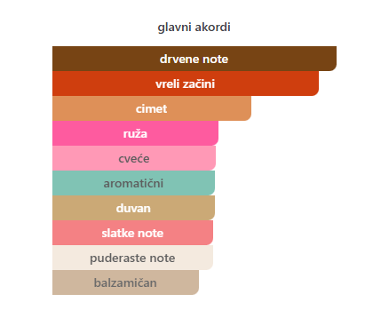 • Cimet: Dominantna nota koja mirisu daje toplinu i prepoznatljivu “vrelinu”.