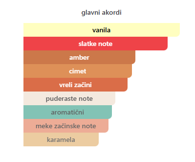 - Bazne: Vanilija, Amber, Mahune Tonke, Antilop