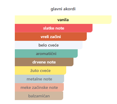 - Bazne: Vanilija, Mahune Tonke, Palisander, Mahovina