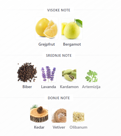 - Srednje: Biber, Lavanda, Kardamon, Artemizija