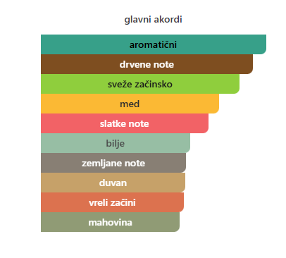 - Srednje: Med, Lavanda, Ruža, Žalfija, Jasmin, Geranijum, Korijen irisa, Đurđevak