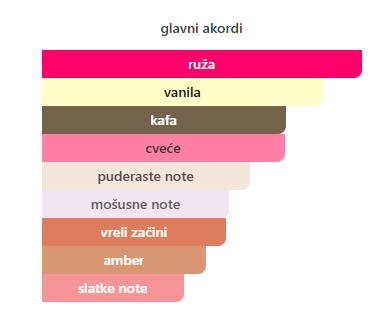 - Bazne: Vanila, Beli mošus, Amber