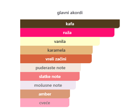 - Srednje: Pržena zrna kafe, Francuska ruža, Drvene note