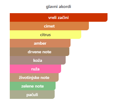- Srednje: Cimet, Aromatizovani začini, Ruža