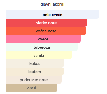 - Srednje: Tuberoza, Bela frezija, Jasmin, Ruža
