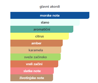 - Srednje: Morske note, So, Kardamom iz Gvatemale, Crni biber, Ružičasti biber
