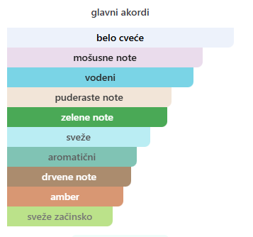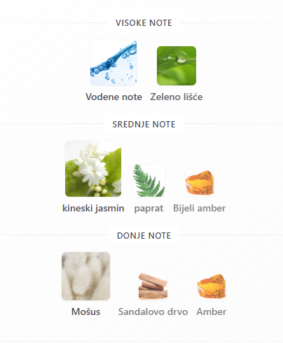 - Bazne: Mošus, Sandalovo drvo, Amber