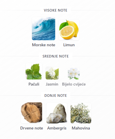 • Srednje note: Pačuli, Jasmin, Belo cveće